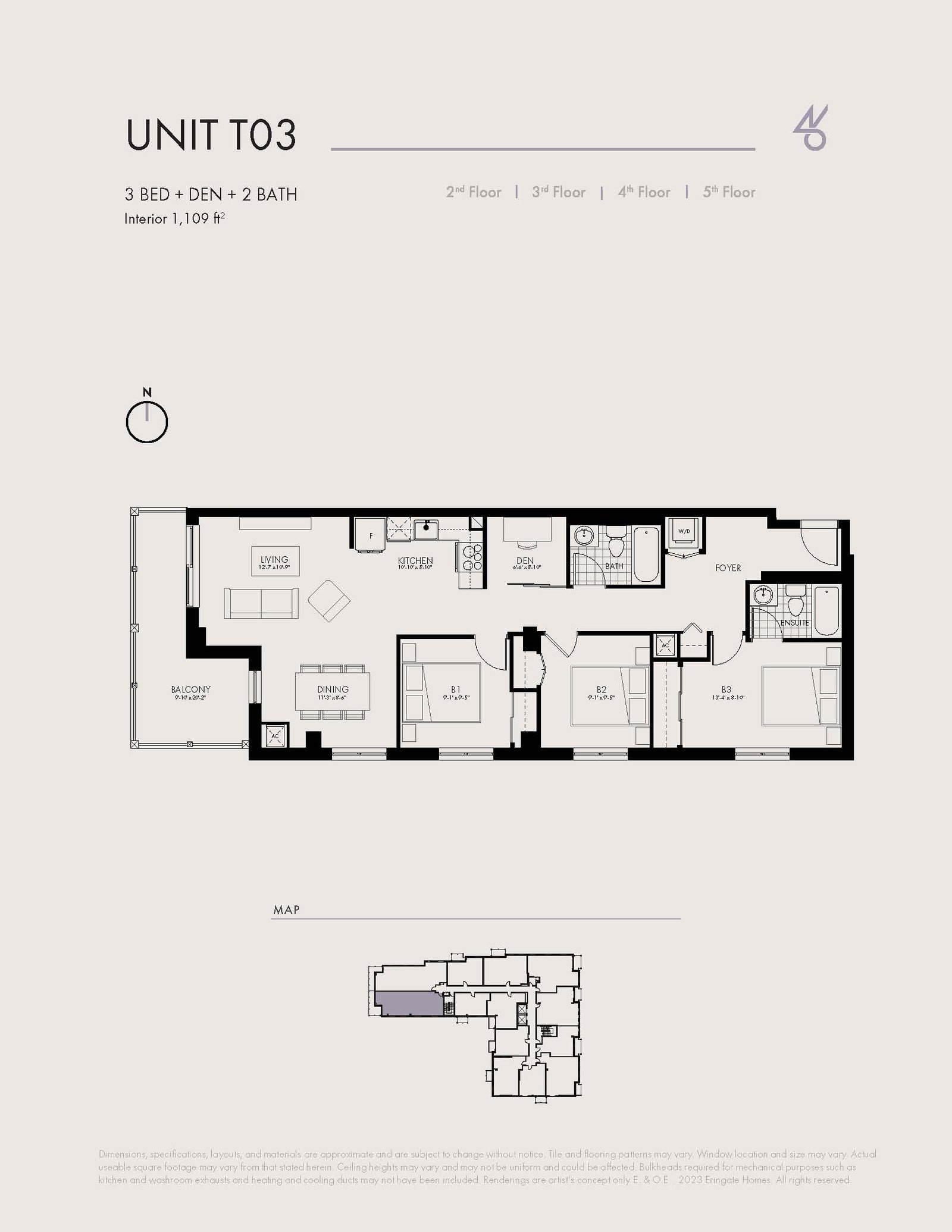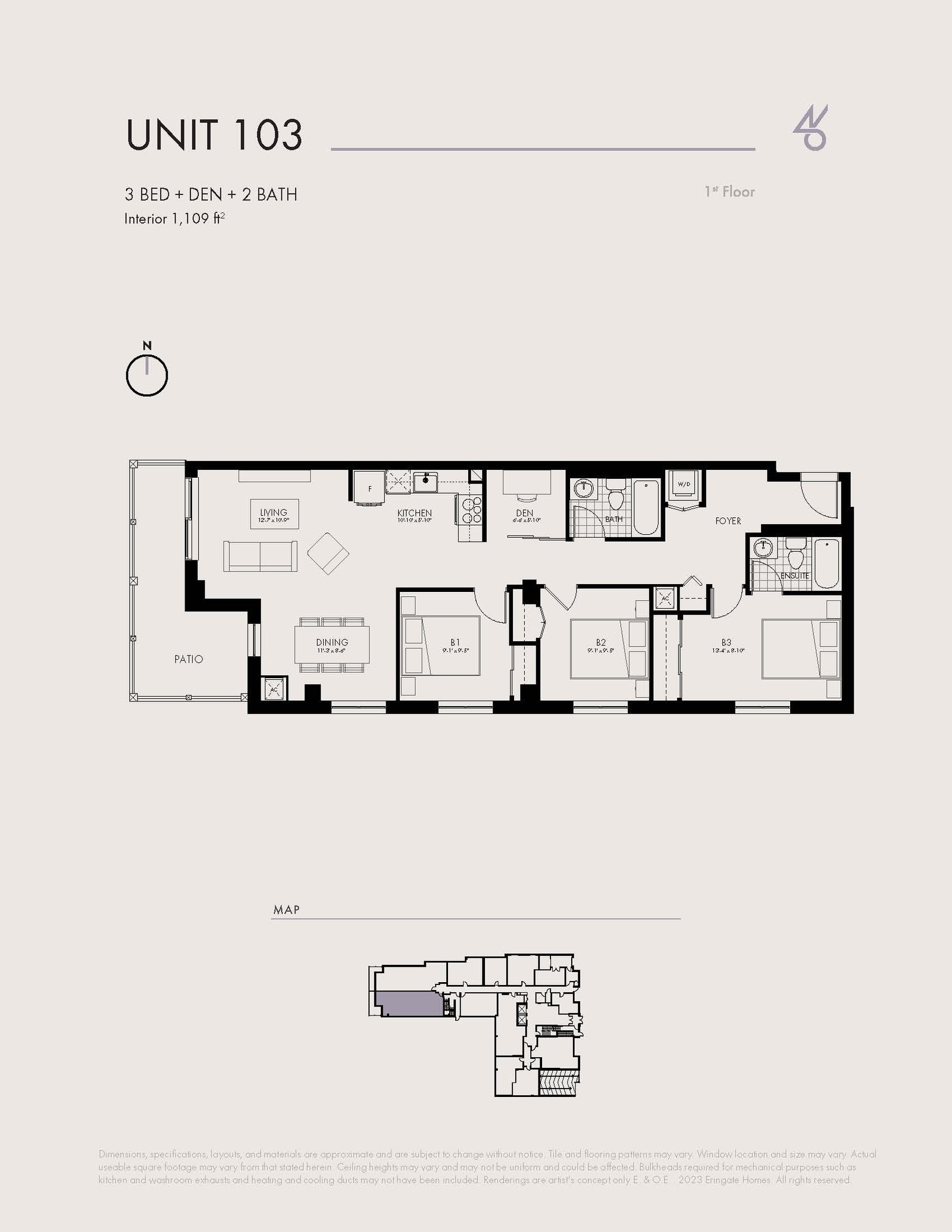 | Unit 103 | 3+ | 2 | 1109 | - |