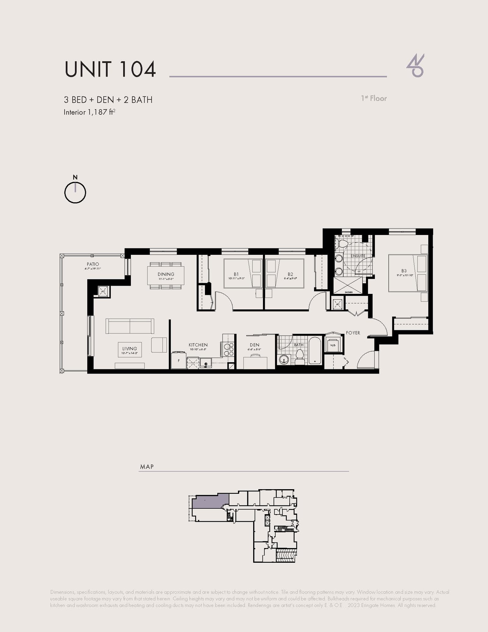 | Unit 104 | 3+ | 2 | 1187 | - |