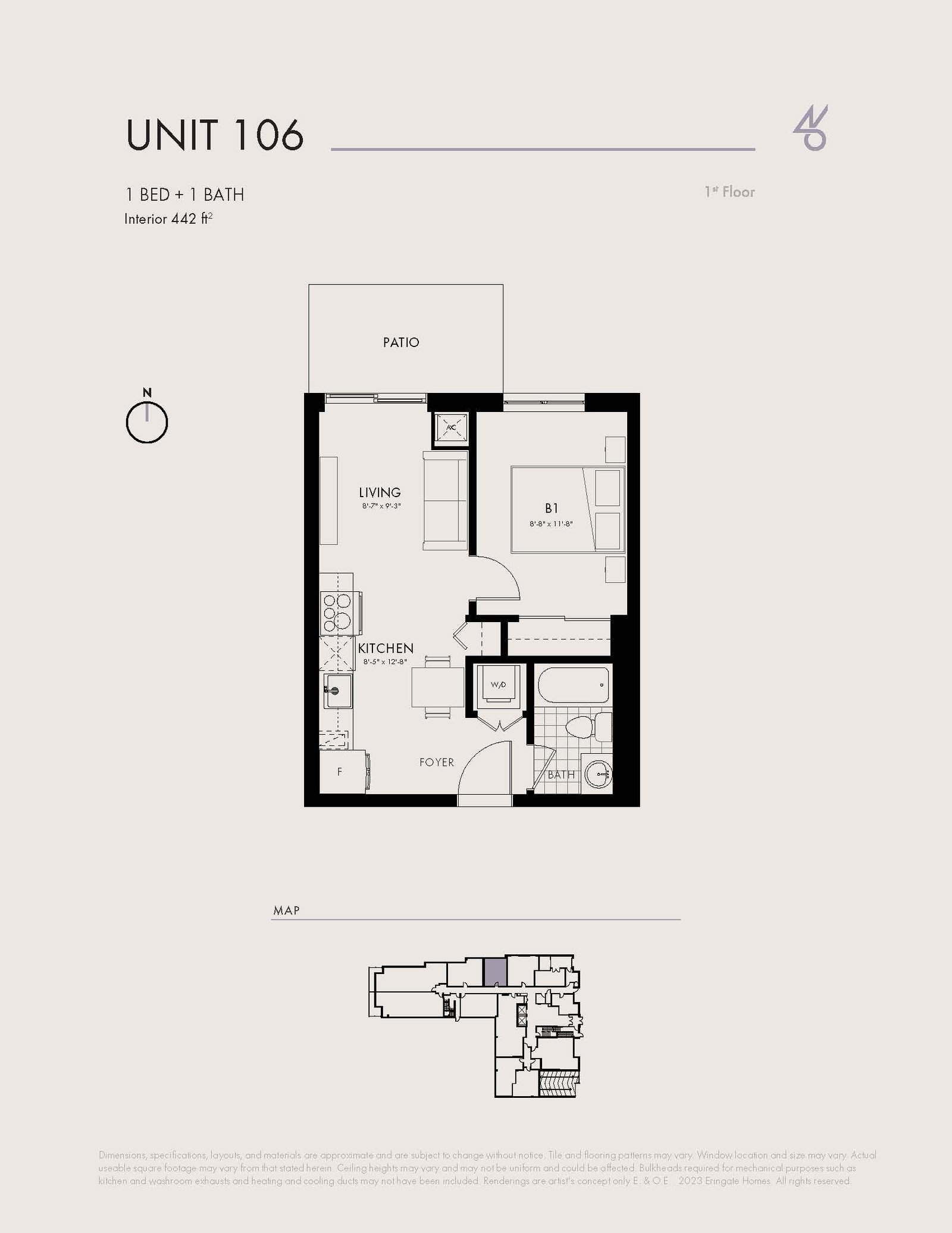 Unit 106 | 1 | 1 | 442 | - | - | - | - | Reserve Now |