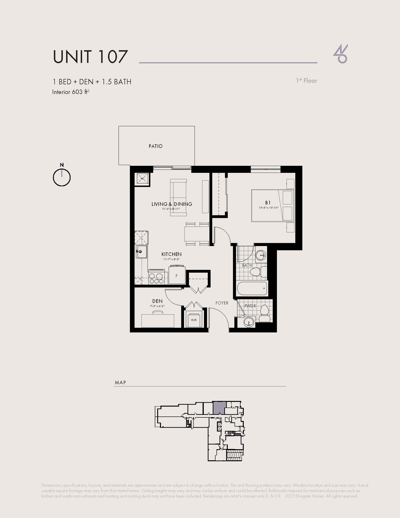 | Unit 107 | 1+ | 1.5 | 603 | - |