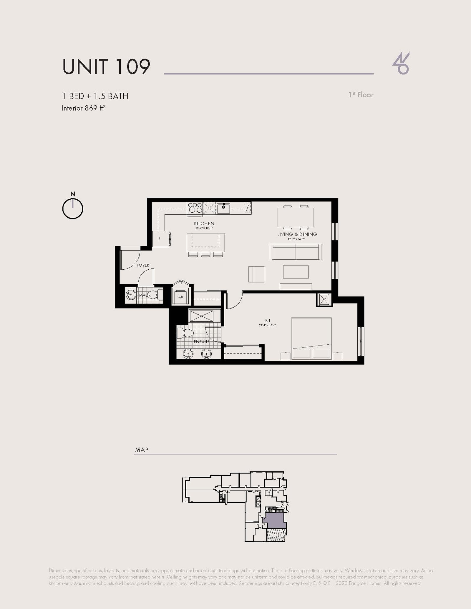 Unit 109 | 1 | 1.5 | 869 | - | - | - | - | Reserve Now |