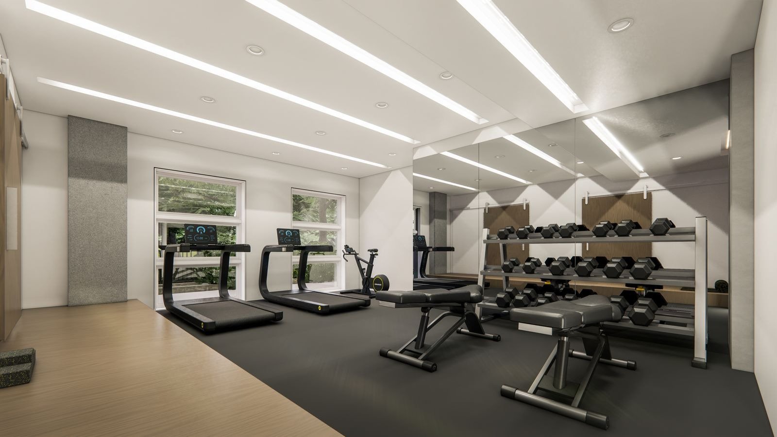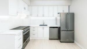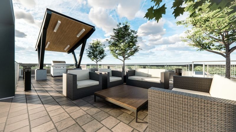 Beyond the residences, 46 on Main unveils a rooftop lounge, an idyllic escape equipped with a barbecue and seating—a perfect setting for socializing or unwinding. Residents also enjoy access to a comprehensive fitness suite promoting wellness, featuring amenities such as a free weights room, spinning area, bench seating, and a water station. The suite interiors boast high ceilings, laminate flooring in non-tiled areas, fire-rated entry doors, and contemporary interior doors painted in semi-gloss white. Custom-designed kitchens showcase designer-appointed cabinetry, quartz countertops, and a well-appointed appliance package. Additionally, bathrooms boast designer cabinetry, quartz vanity countertops, full-width mirrors, and stylish water-efficient fixtures. With its array of features and amenities, 46 on Main redefines sophisticated living in the heart of historic Markham.