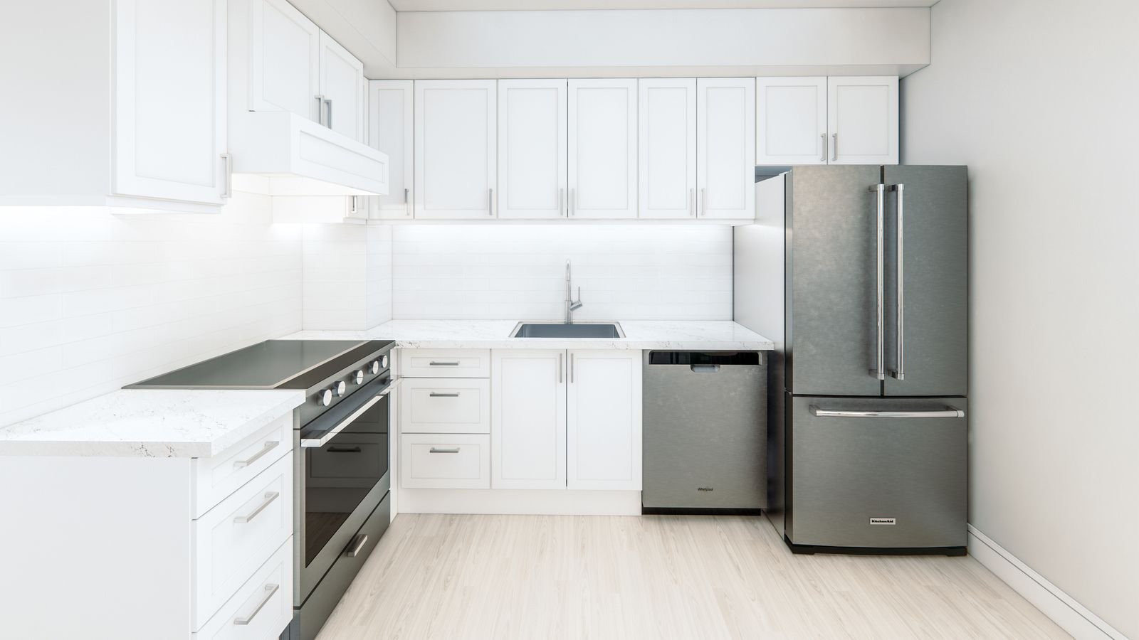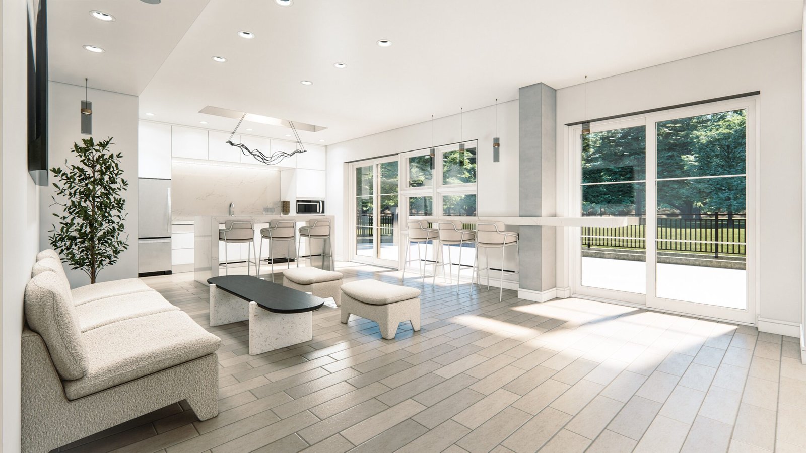 46 on Main stands as a testament to meticulous design and attention to detail, offering homes that seamlessly blend with the natural surroundings of this vibrant locale. Each residence features thoughtfully designed terraces, erasing the boundaries between indoor and outdoor living. The kitchens, adorned with sleek minimal finishes, serve as versatile spaces for daily tasks, boasting top-quality integrated appliances, soft-closing doors, and elegant under-mounted sinks. The majority of condos come complete with en-suite bathrooms, showcasing contemporary white bathware against eye-catching metro tiles and ample storage space. The master bedrooms, adorned in a neutral color palette, feature fitted wardrobes for practical storage solutions.