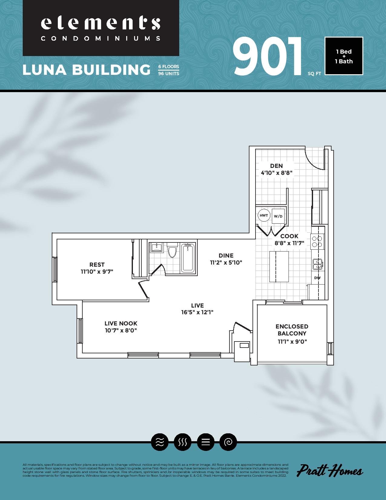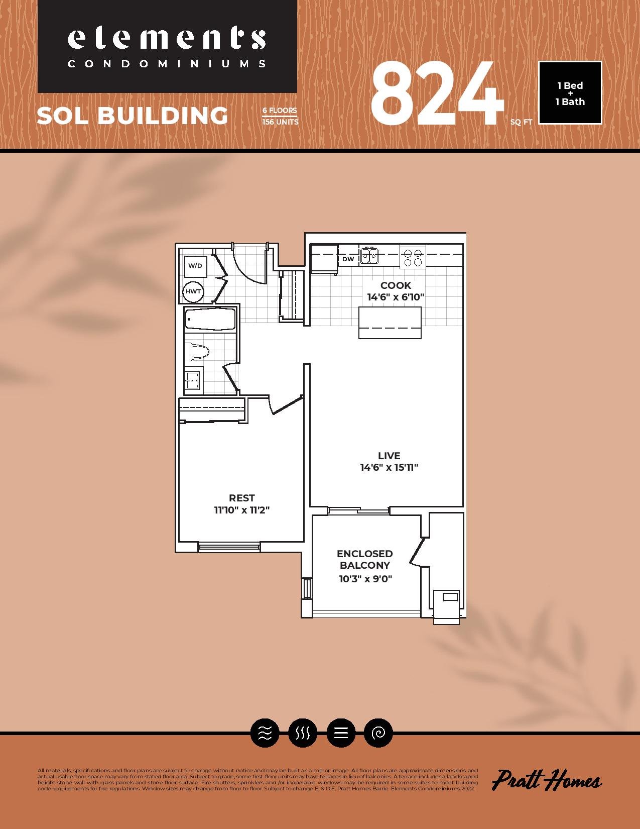 Elements Condos located at 723 Mapleview Drive East in the Southeast of Barrie is Pratt Homes' newest condo development. Prices are estimated to be starting from $575,990-$742,990 and will feature 346 units at 6 storeys. There are suites with one, two, and three bedrooms plus a den, ranging in size from 700 to 1300 square feet. You will have access to a large solarium balcony in each unit, allowing you to take in the outdoors year-round. Elements is nearby Coronation and the Barrie South Go, the project is estimated to be completed in 2026 and will be located on Mapleview Drive East & Kneeshaw Drive at the Hewitt's Gate Community in Barrie.