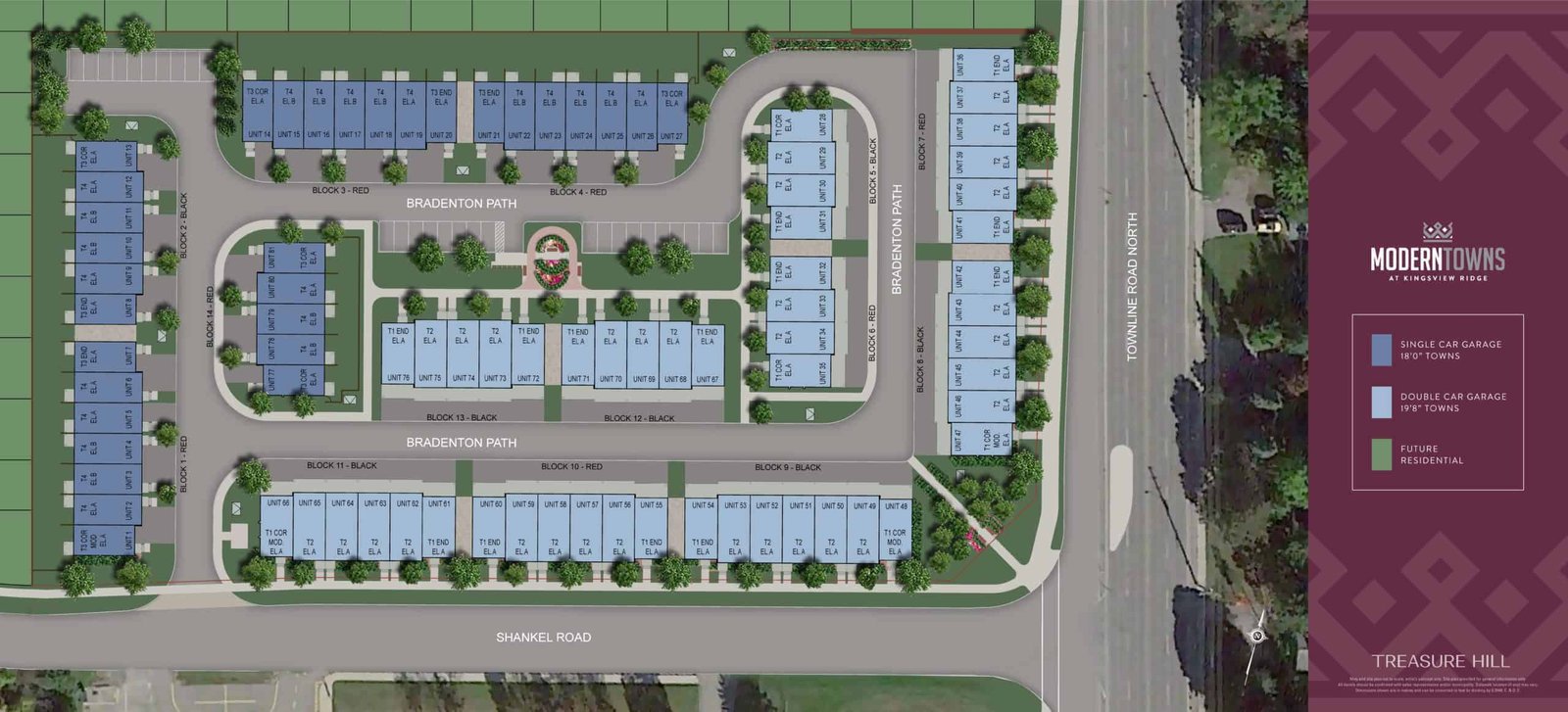 Modern Towns at Kingsview Ridge is a new freehold townhouse development by Treasure Hill Homes and Greybrook Realty Partners. Prices estimated to be starting from the $874,990+ and will feature unit sizes range from 1,600 to 1,841 square feet. Kingsview Ridge is nearby Courtice West Park and several shops like Walmart Supercentre and FreshCo King & Townline. Residents can also easily get around the city via Highway 401 and the new 407 extension where multiple transit stops are available. The project is estimated to be completed on 2022 and will be located on Durham Regional Road 55 at the Courtice neighbourhood in Oshawa.