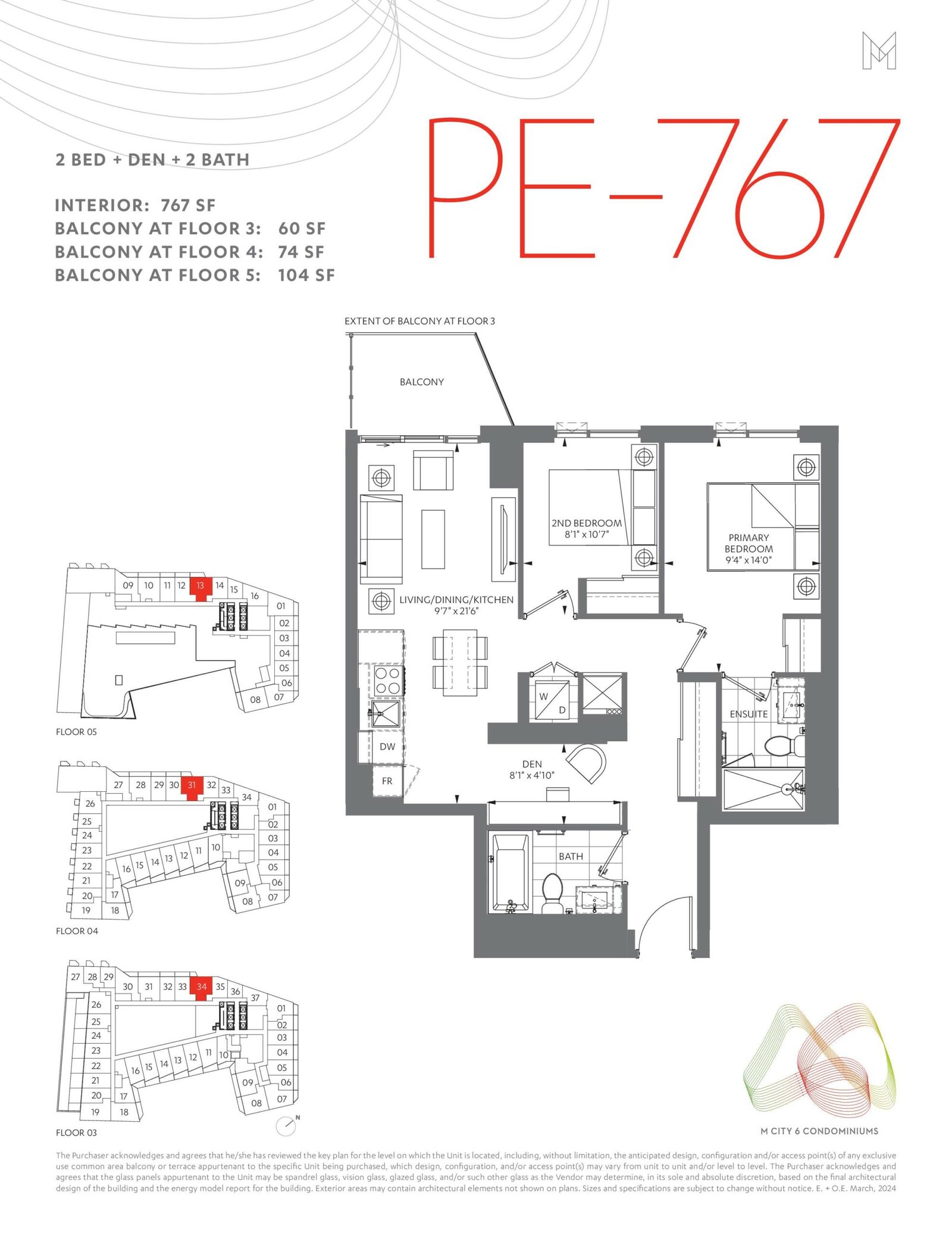 | PE-767 | 2+ | 2 | 1,005 SQ. FT. | - |