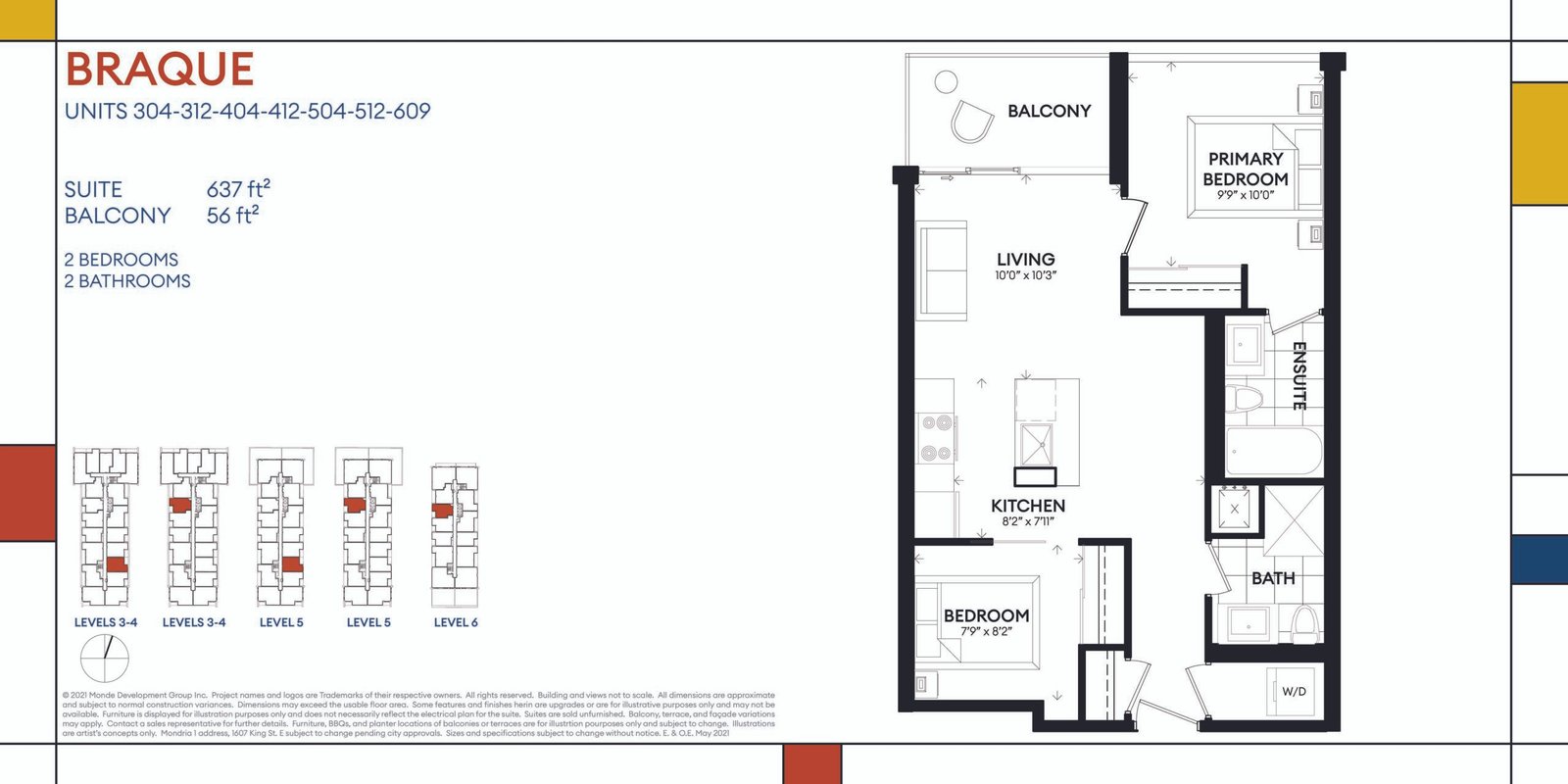 Mondria 1 is a new low-rise development by Monde Development Group. Prices estimated to be starting from $500,000's and will feature 89 units at 6 storeys. Mondria 1 is nearby Stuart Park, residents and visitors can get around the city and surrounding area by using Durham Region Transit (D.R.T.). The building is expected to have colour themed floors and a spacious shared amenity space including a wellness centre, coworking space, party hall, picnic area, and a rooftop patio for outdoor dining to enjoy the city view. Currently in preconstruction the project is estimated to be completed in 2024 and will be located on 1607 Durham Regional Highway 2 at the Courtice neighbourhood in Oshawa.