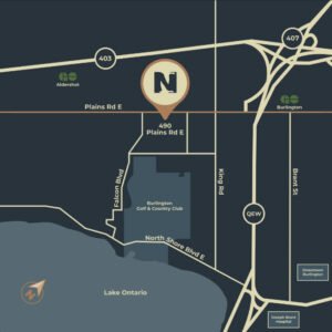 North Shore is ideally situated at 490 Plains Road East in Burlington. The development lies in the charming neighbourhood of LaSalle, west of Downtown Burlington, and offers a perfect blend of urban living and abundant green spaces. Overlooking the picturesque shores of Lake Ontario, residents are treated to stunning views of Burlington Bay and the rolling fairways of the prestigious Burlington Golf and Country Club.