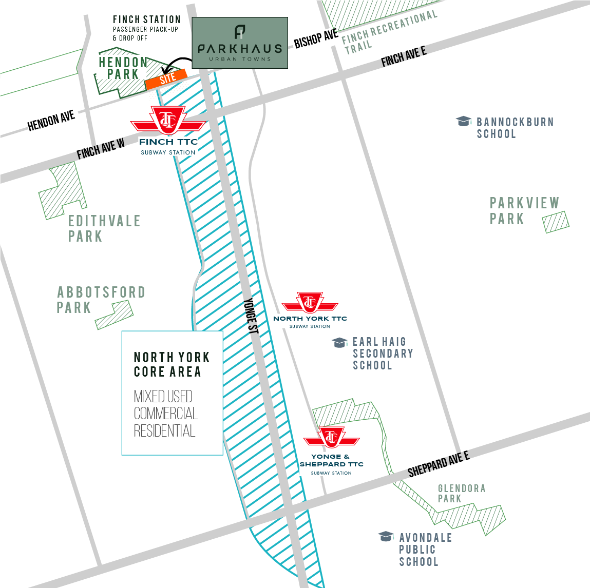 Located in the heart of the vibrant Newtonbrook West neighbourhood in Toronto, ParkHaus Urban Towns offers residents a modern, connected lifestyle with easy access to amenities, transit options, and natural green spaces. Backing onto the serene Hendon Park, residents can enjoy the tranquility of nature while still being minutes away from the bustling city life.