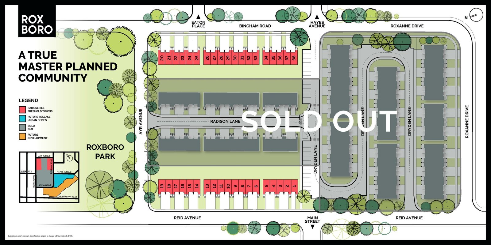 The area around Roxboro is primarily residential, with several parks and schools nearby. The development is within walking distance of Eastwood Park, a large green space with a playground, sports fields, and walking trails. It is also close to Gage Park, which features a rose garden, a fountain, and a bandshell that hosts live music events in the summer.
