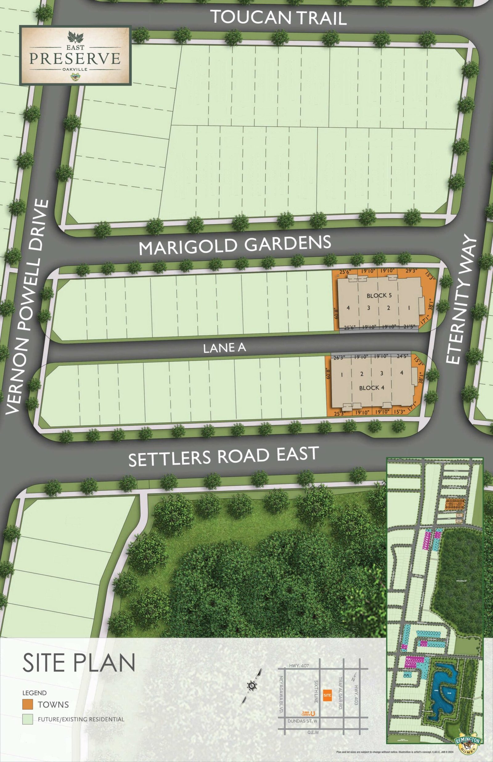 The East Preserve is a new development by Remington Homes. Prices estimated to be starting from $1,193,990 and will feature 8 units at 3 storeys. The East Preserve is nearby Fowley Park and the Highway 407 GO Carpool, the project is estimated to be completed in 2024 and will be located on 119 Burnhamthorpe Rd E at the Trafalgar neighbourhood in Oakville.