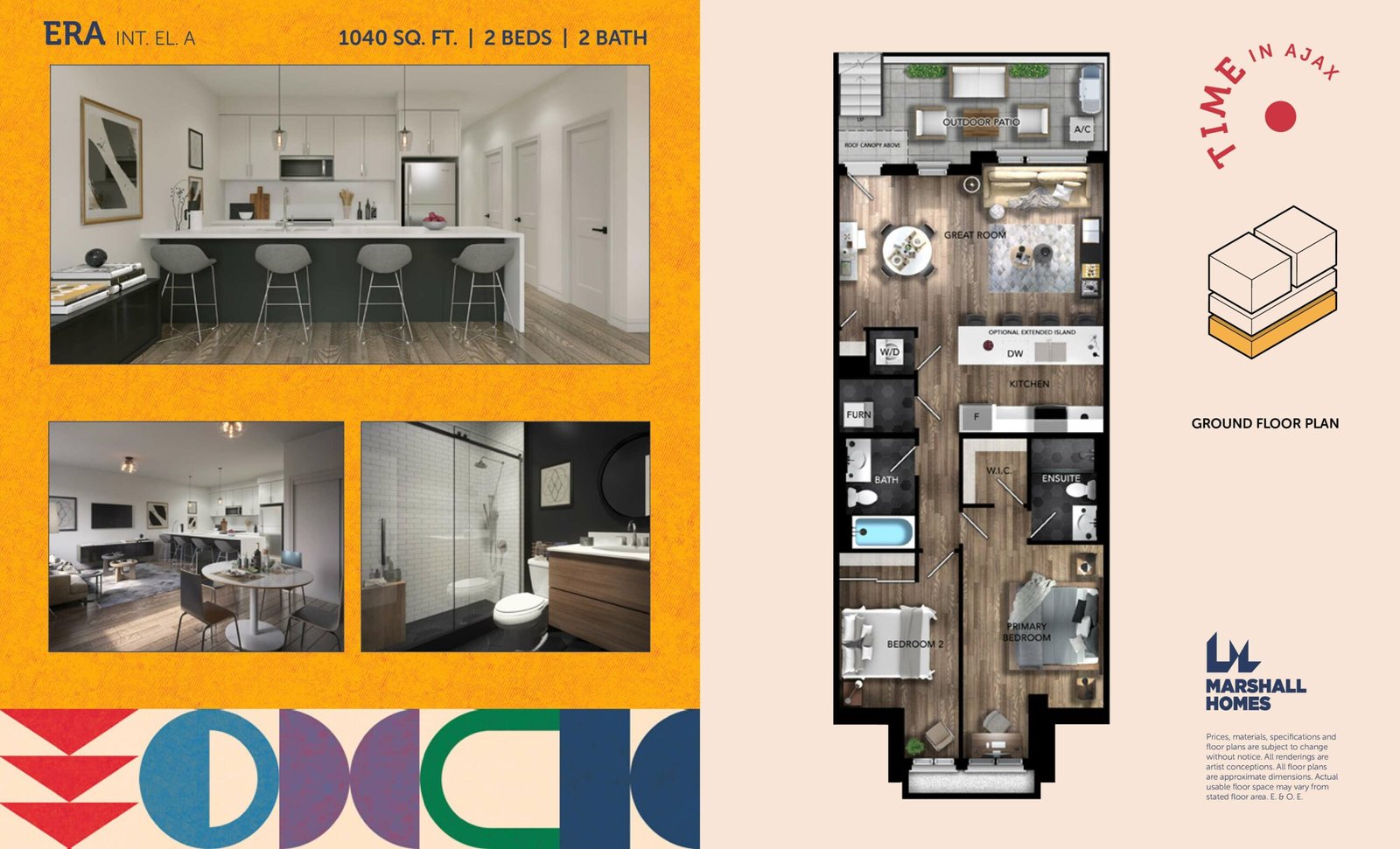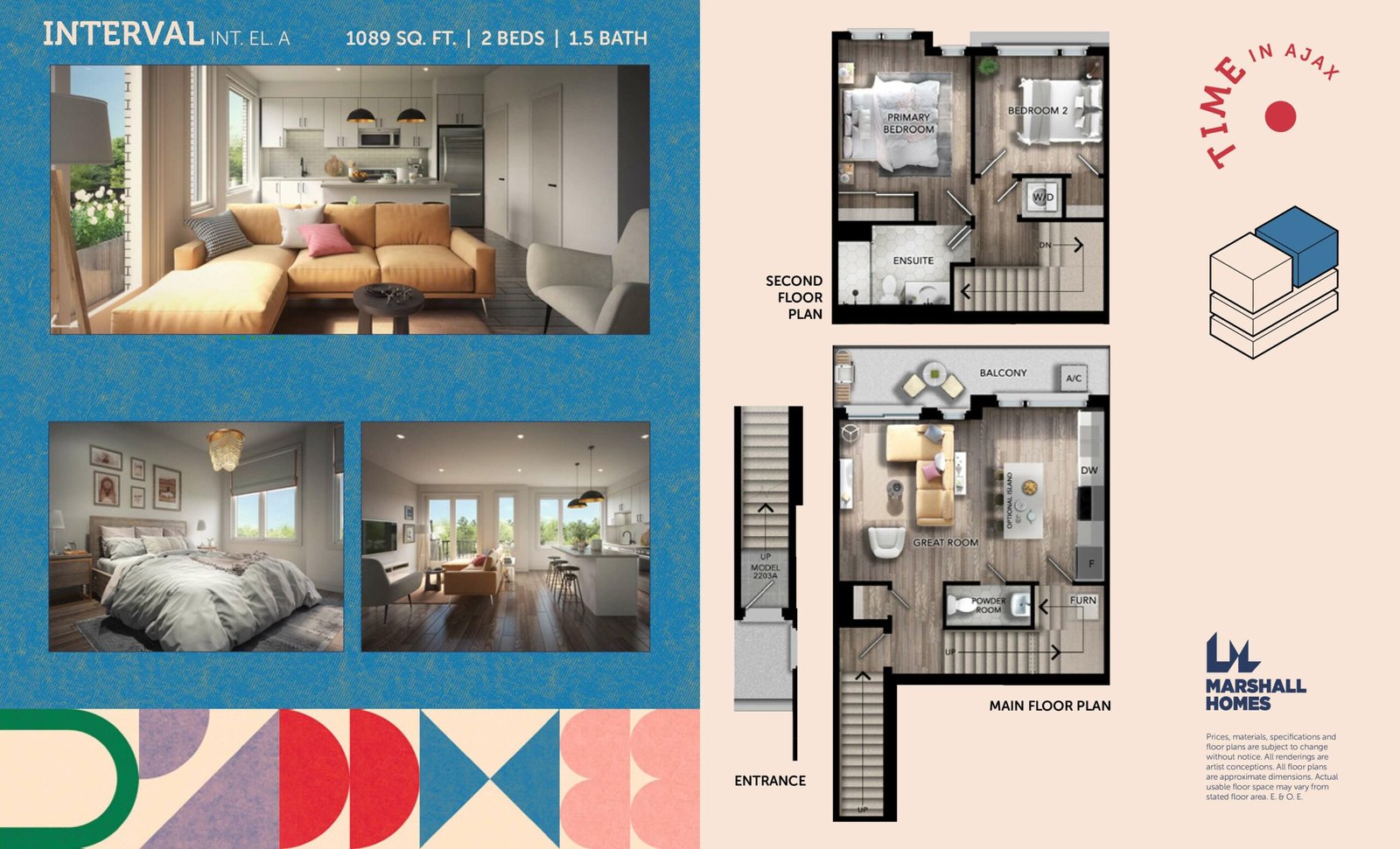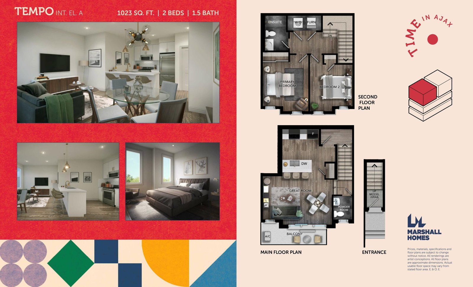 Time offers a unique living experience with a collection of stacked townhomes and spacious urban bungalows along Rossland Road West in Ajax. The homes range in size from 821 sq. ft. to 1,089 sq. ft. and are available in both one- and two-level layouts, designed to suit different lifestyles. Each residence is thoughtfully crafted with modern urban features, offering both comfort and style.
