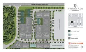 The exteriors of Woodend Place reflect timeless elegance, featuring traditional-inspired architecture with a combination of brick, stone, stucco, and pre-finished siding. Copper accents, decorative exterior railings, and elegant coach lights contribute to the stately facades. Low-maintenance aluminum soffits, fully paved driveways, and fully sodded front and rear yards add to the overall appeal.