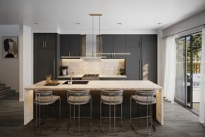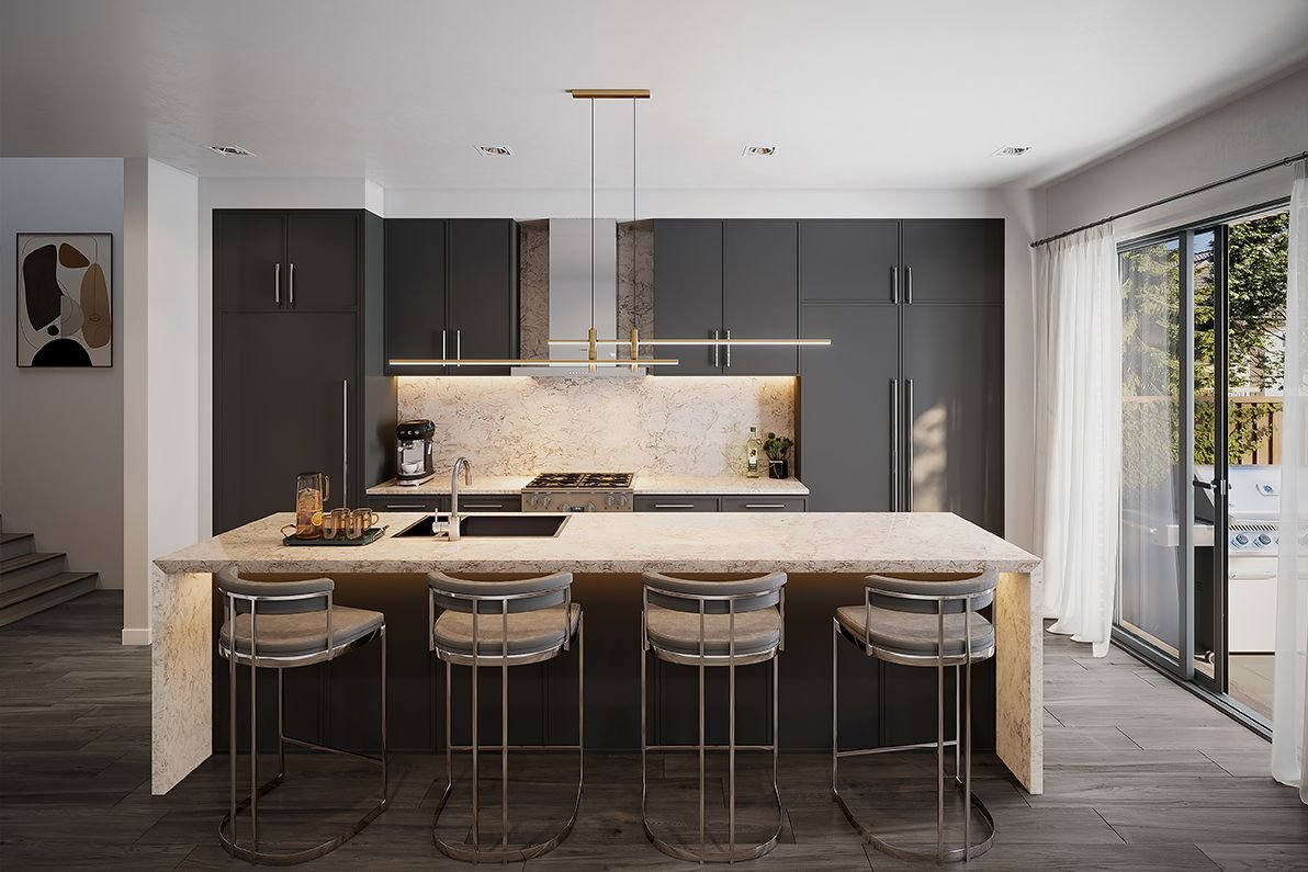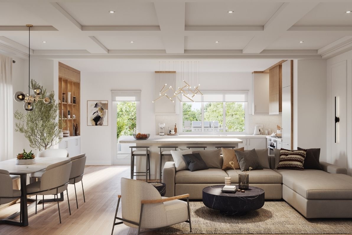 The townhomes are thoughtfully designed for modern living, with rough-in wiring for future Electric Vehicle (EV) charging stations, USB receptacle outlets, and 4" LED pot lights throughout. The community also prioritizes comfort and peace of mind with features such as capped gas lines for future BBQ hookups, monitored security systems, and smoke and carbon monoxide detectors.