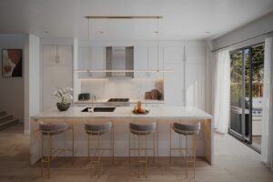 The kitchens are a chef's delight, equipped with quartz countertops, Miele integrated kitchen appliances, and quality-designed cabinetry with extended height uppers. The Primary Bathroom Spa Retreat Package adds a touch of luxury with a frameless glass shower enclosure, freestanding soaker tub, and exquisite finishes.