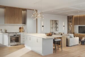 Woodend Place offers an exquisite living experience with a range of premium features and amenities. Each townhome is designed with meticulous attention to detail, featuring 9' ceiling heights throughout, including basements for 2-storey towns, creating a spacious and elegant atmosphere. The interiors boast 8' high 2-panel smooth style interior doors on the main floor, stained engineered hardwood flooring, and imported 12"x24" floor tiles.